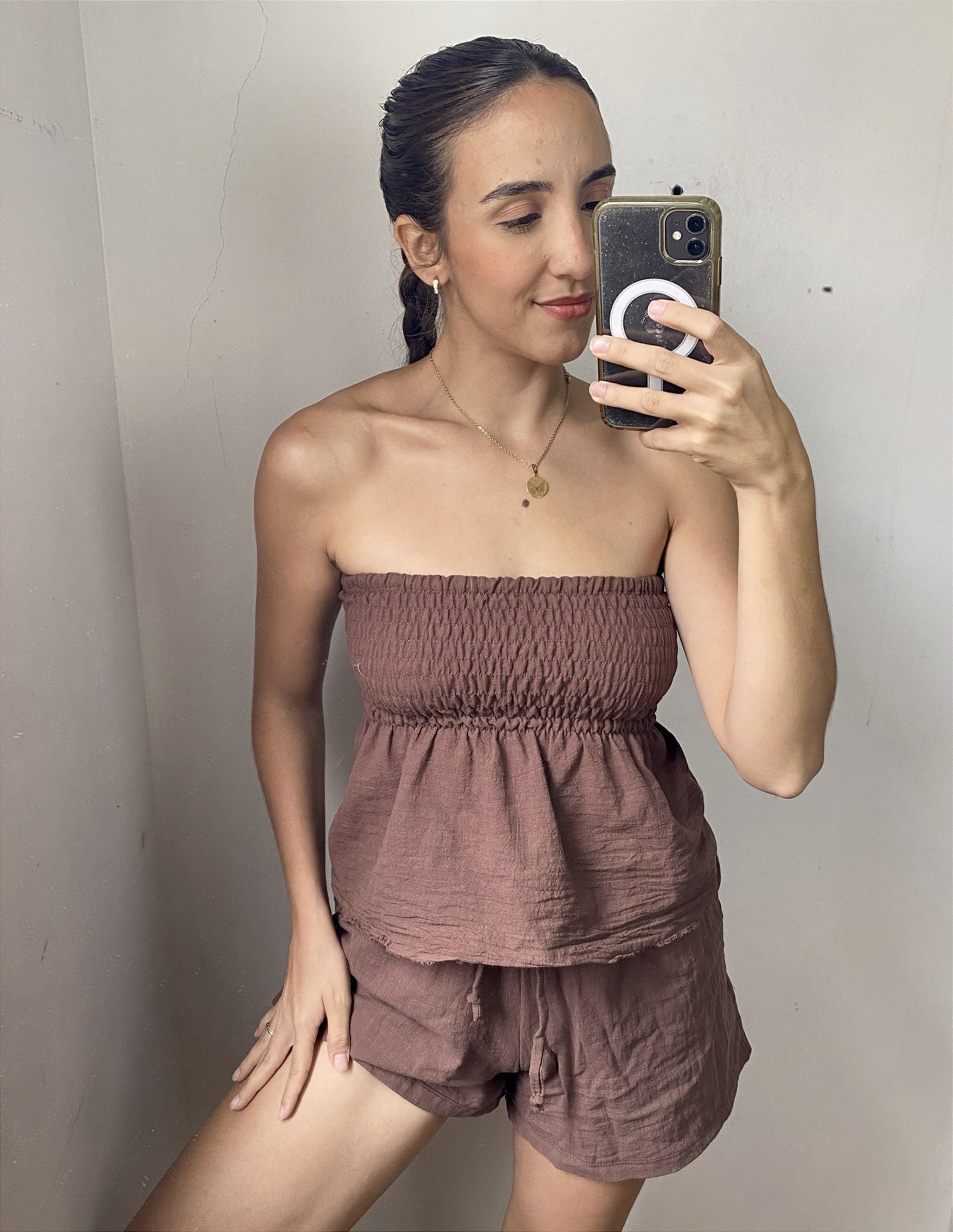 Confortável e delicada, essa blusa é um verdadeiro charme. Com modelagem tomara que caia, ela possui lastex em toda circunferência na altura do busto, trazendo conforto e sustentação. O detalhe soltinho na barra cria um caimento leve e fluido, trazendo modernidade e feminilidade à peça. Ideal para os dias mais quentes, é versátil e pode ser combinada com shorts, calças ou saias, garantindo produções frescas e estilosas em qualquer ocasião.