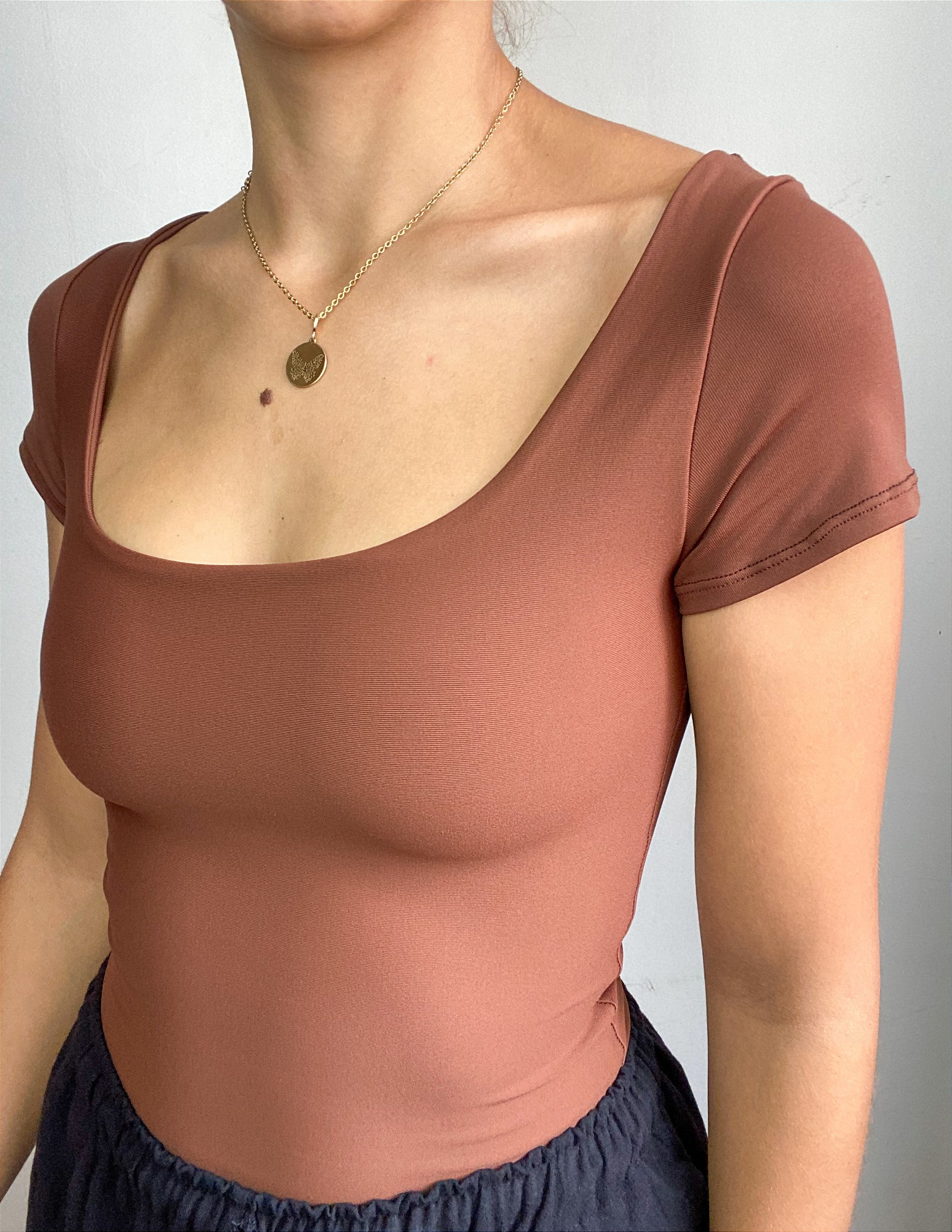 Esse body é a peça perfeita para compor desde os looks casuais até os mais sofisticados. Com decote quadrado que valoriza o colo, o decote canoa que traz elegância e mangas curtas. O tecido macio proporciona conforto e caimento impecável, enquanto o design ajustado ao corpo realça a silhueta de forma sutil e feminina.