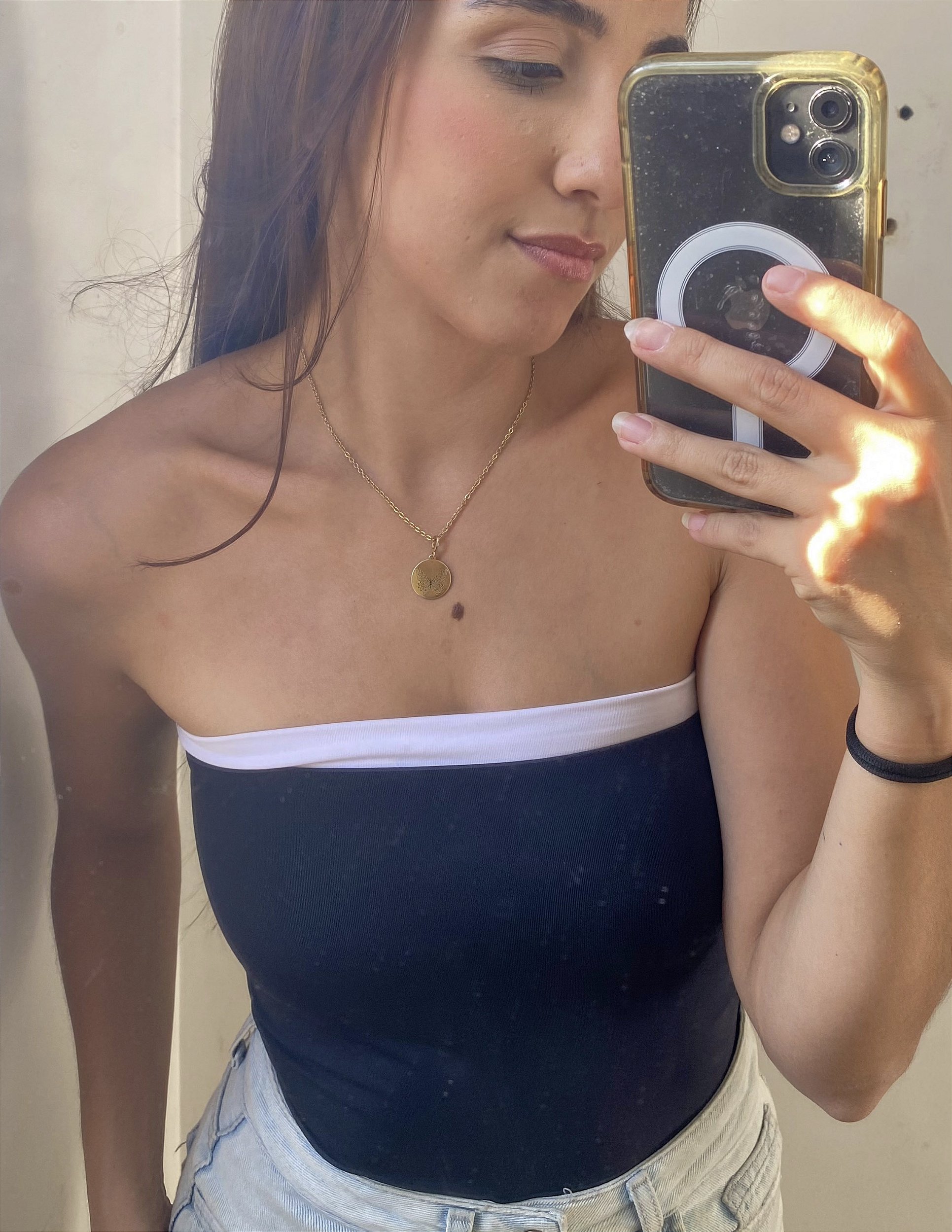 O design tomara que caia com detalhe bicolor traz um toque sofisticado, ideal para compor produções que vão do casual ao chic. Combine com jeans, alfaiataria ou saias para criar diferentes propostas de look.