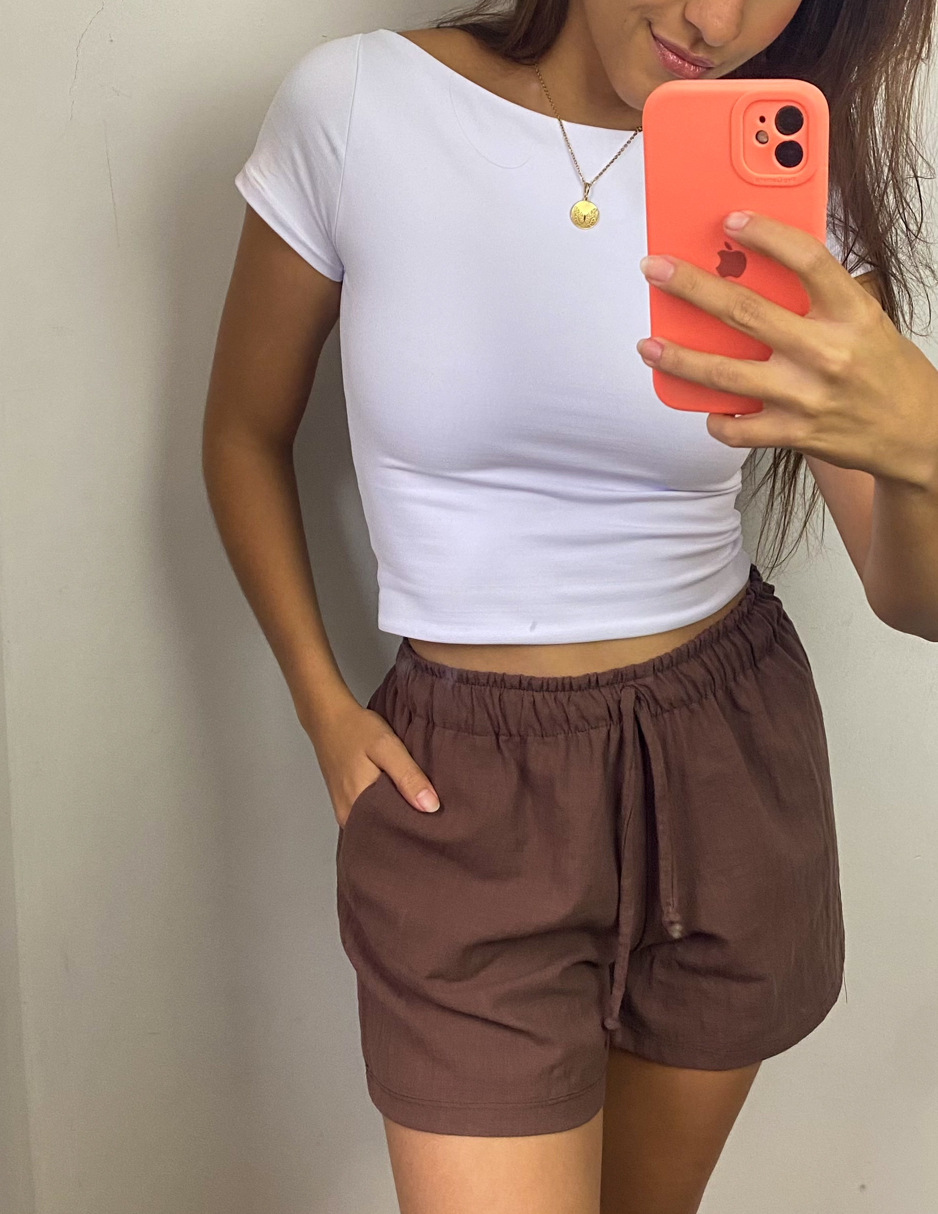 Com caimento leve e design básico, é aquele essencial que combina facilmente com cropped, t-shirts ou regatas, garantindo estilo sem abrir mão do conforto.